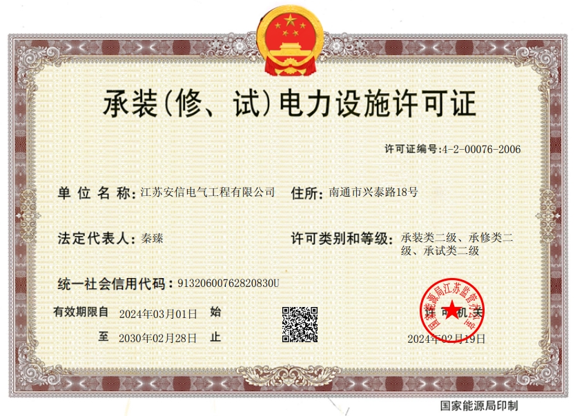 在創業之初,公司就堅持高起點的戰略思路,廣納賢才,集聚行業精英,創新發展,做優企業品牌?,F已取得:承裝二級、承修二級、承試二級,電力工程施工總承包二級,輸變電工程專業承包二級,建筑工程施工總承包二級,建筑機電安裝專業承包二級,地基基礎專業承包二級資質證書,并通過了質量、環境、職業健康和安全管理體系認證,確保各項工作有序管控。